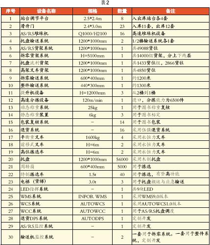 為了達到設(shè)計要求,配送中心配置了大量現(xiàn)代物流設(shè)備,并采用世界著名的物流信息系統(tǒng)INFOR WMS和企業(yè)管理系統(tǒng) SAP R/3。其中主要的設(shè)備配置如表2。