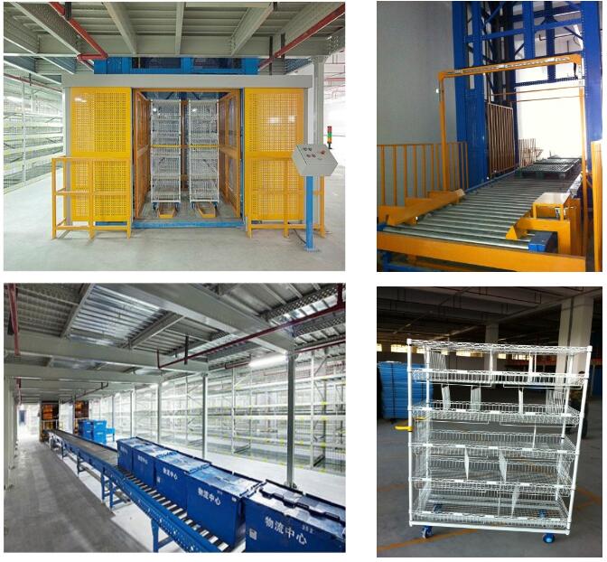 5套揀選車提升機(jī),完成閣樓貨架一層到夾層間的輸送,采用雙車位設(shè)計(jì)及聯(lián)動(dòng)互鎖電梯門(mén)技術(shù),確保輸送的安全性;