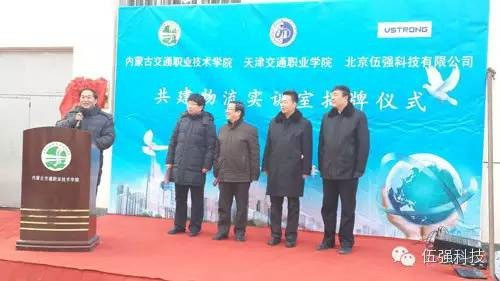 2016年1月15日,天津交通職業(yè)學院、內(nèi)蒙古交通職業(yè)學院、北京伍強科技有限公司三方在內(nèi)蒙古交通職業(yè)學院舉行“校-企-?!甭?lián)合建設物流實訓室的揭牌儀式。內(nèi)蒙古交通職業(yè)學院黨委書記劉力山、院長尚慶華、副院長王建軍,天津交通職業(yè)學院院長吳宗保、首席專家薛威教授,北京伍強科技有限公司總裁尹軍琪以及其他領導和師生60多人參加了揭牌儀式。
